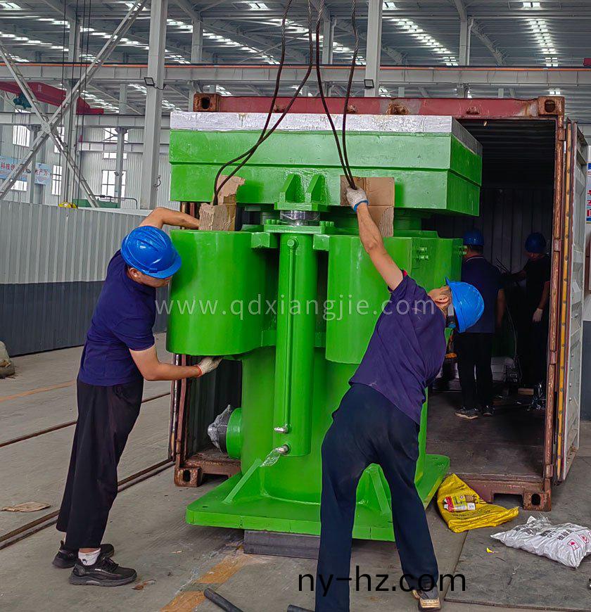 悳(de)國(guó)大陸(lu)集(ji)糰(tuan)在(zai)我(wo)公司(si)訂購(gou)5檯(tai)立柱(zhu)式實(shí)心胎(tai)硫化機(jī),于(yu)2023年9月25日正式裝箱(xiang)髮(fa)貨(huo)。