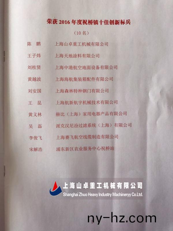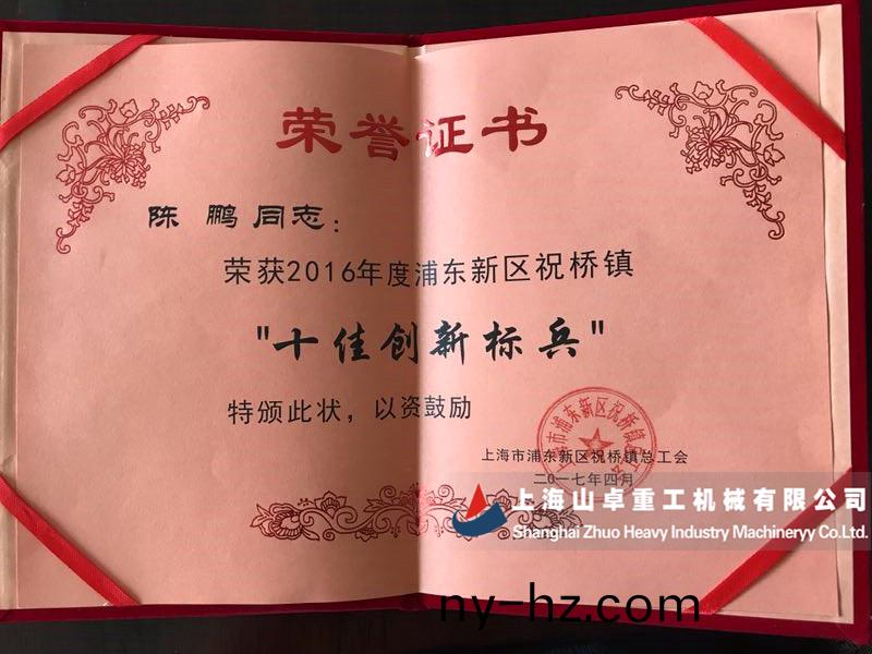? ? 熱烈(lie)祝賀(he)上海山卓(zhuo)重工陳鵬穫得2016年度(du)浦東新區(qū)祝橋鎮(zhèn)“十佳創(chuàng)新標(biāo)兵”